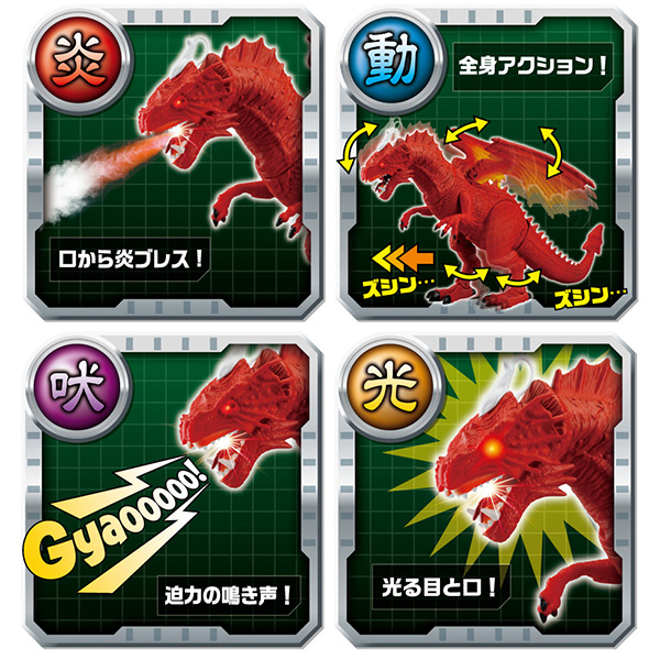 炎ブレスを吐く!ほえる!光る!歩く!迫力のあるリアルな動きを実現!