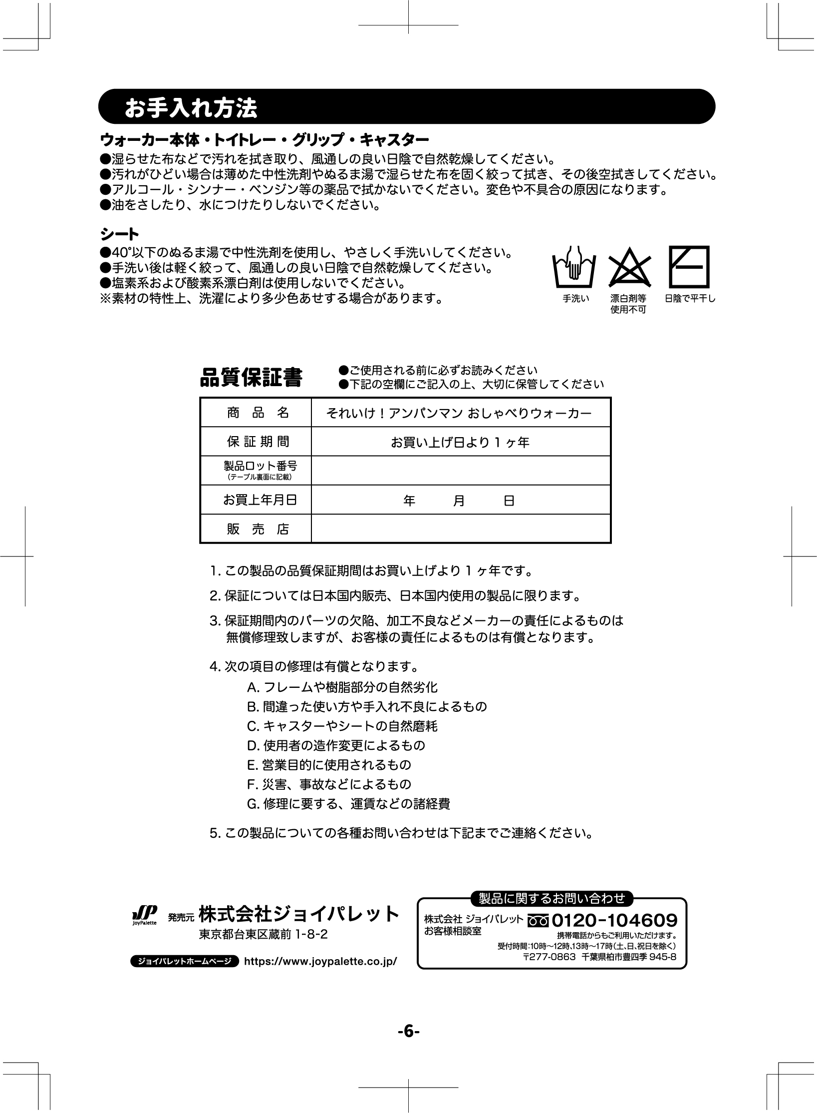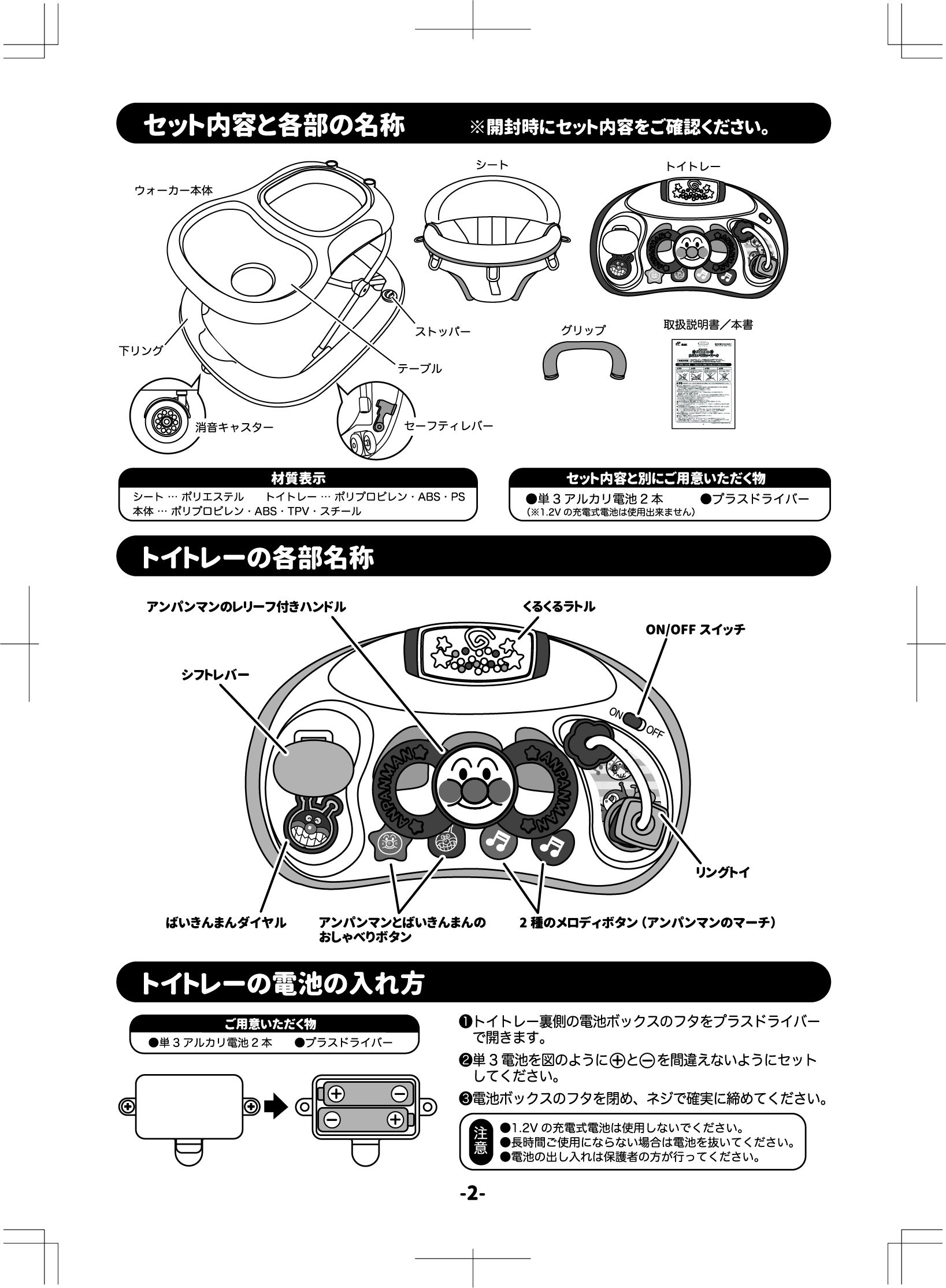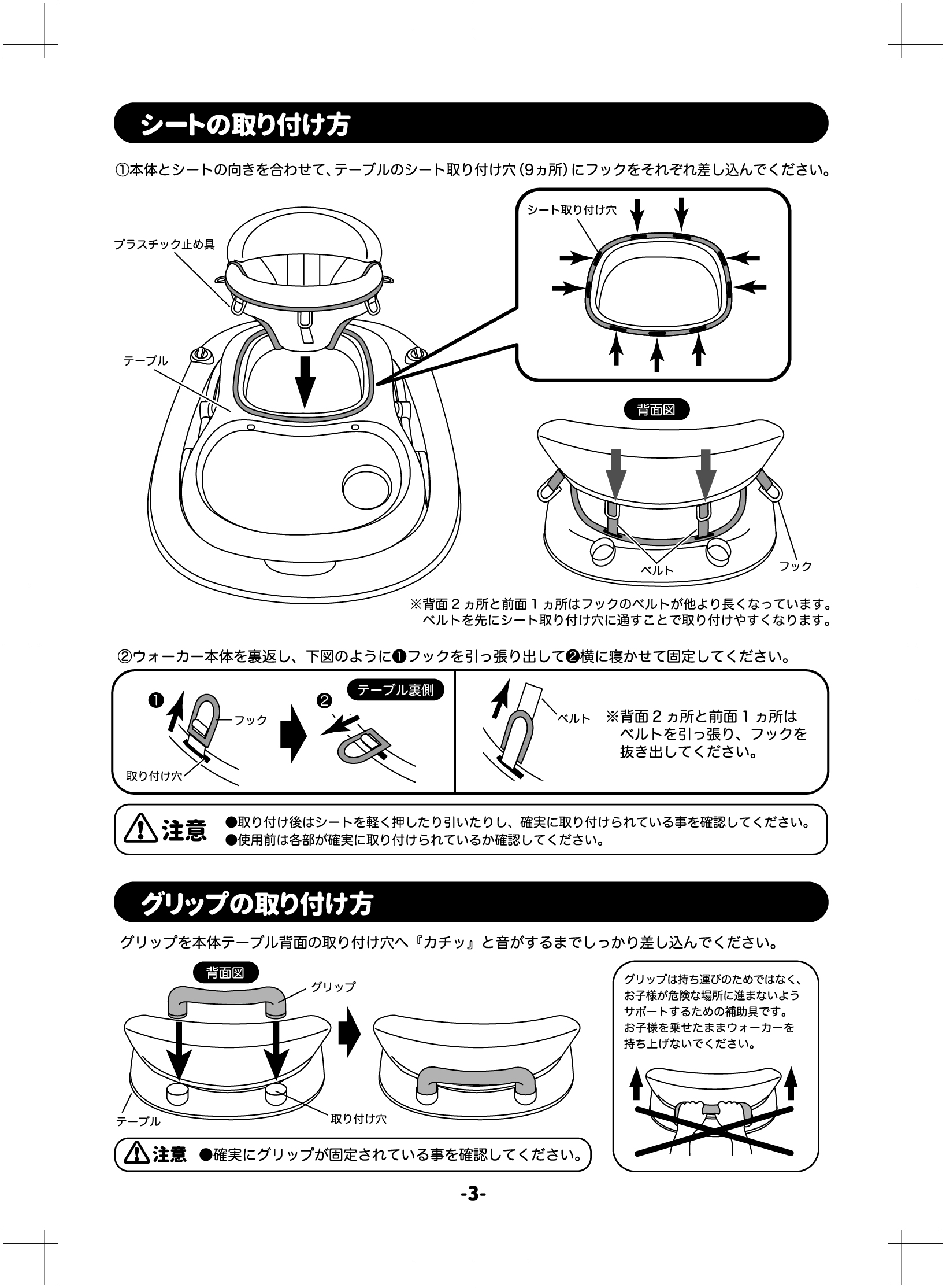 ウォーカー本体、シート、トイトレー、グリップ、取扱説明書