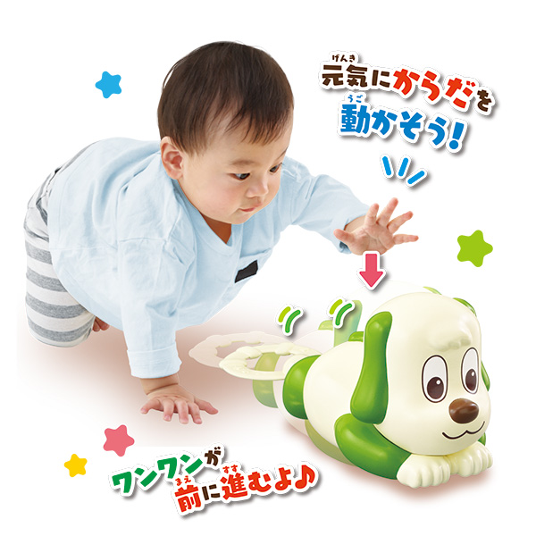 進む『ワンワン』を追いかけることでハイハイを促します。
