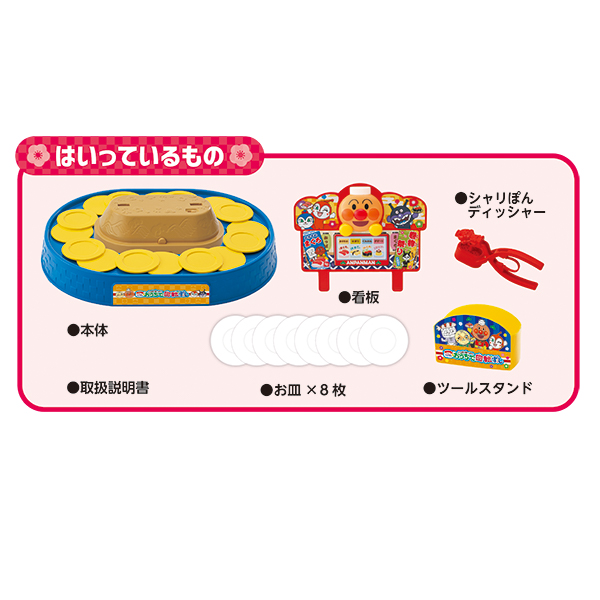 本体、看板、シャリぽんディッシャー、お皿×8枚、ツールスタンド、取扱説明書