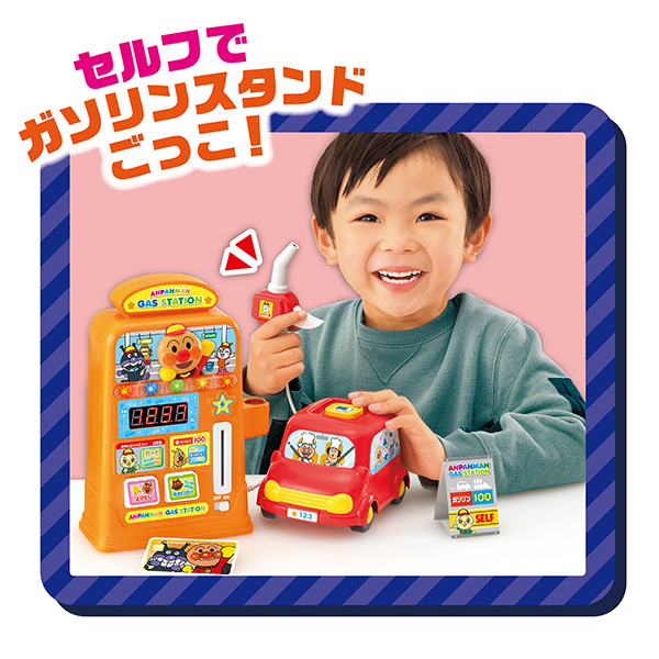 アンパンマンのガソリンスタンドでセルフ給油ごっこ!