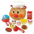 コック帽をかぶったアンパンマンのケースにおままごとアイテムがいっぱい!