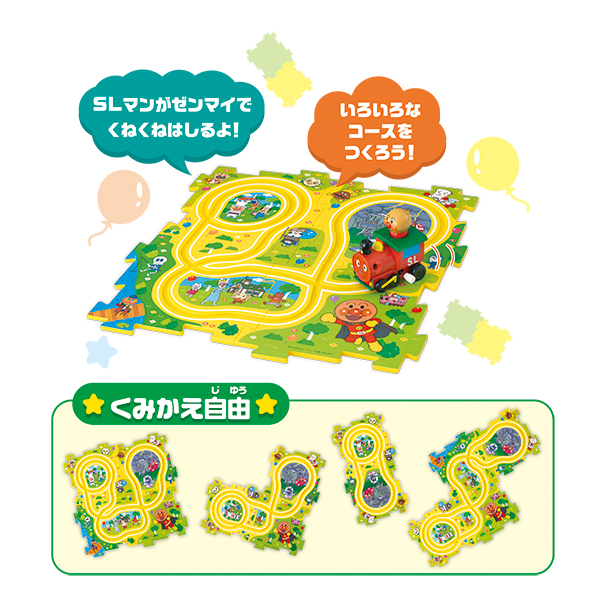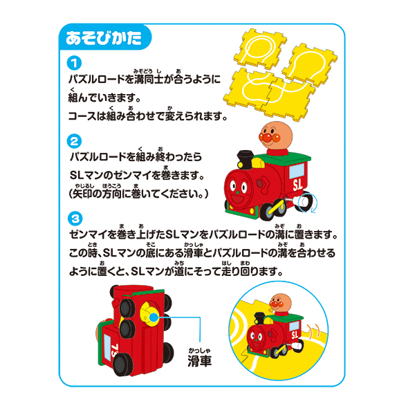SLマンがゼンマイでパズルロードの上をくねくね走ります。