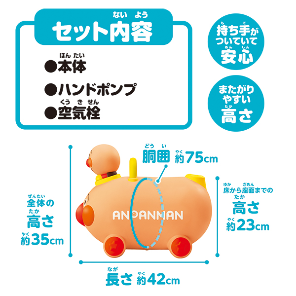 アンパンマンごうの形をした可愛い室内専用の乗用トイです。