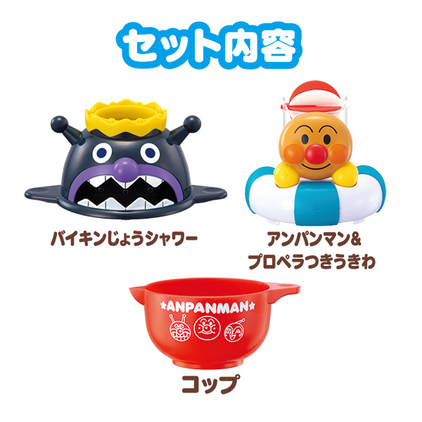 アンパンマン&プロペラ付きうきわ、バイキンじょうシャワー、コップ